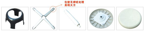 PP注塑凳面,直徑300mm;高度在450mm ~ 500mm之間連續可調;立桿和腳為壁厚1.2mm、直徑50mm的鋼管,中間為升降螺桿、帶托盤壁厚1.6mm,底腳座為:四字交叉型350mm x 350mm,金屬部分噴塑,白色高亮度環氧樹脂涂層,耐腐蝕、耐熱,防紫外線輻射,結構穩固,穩定性好。